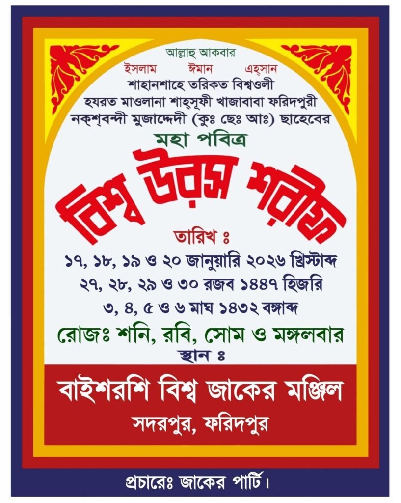 লেখক: শাহজাদা সৈয়দ ফয়জুল আবেদীন আরমান ফরহাদাবাদী পবিত্র কোরআনে ইরশাদ হয়েছে: “নিশ্চয়ই আল্লাহর অলিদের জন্য কোনো ভয় নেই, তাঁরা চিন্তিও হবেন না।” (সুরা ইউনুস, ৬২) নূরের এক অবিচ্ছিন্ন ধারায়…